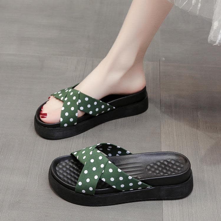 正韓時尚波點涼拖鞋女厚底舒適交叉平底拖鞋松糕軟底度假沙灘涼鞋