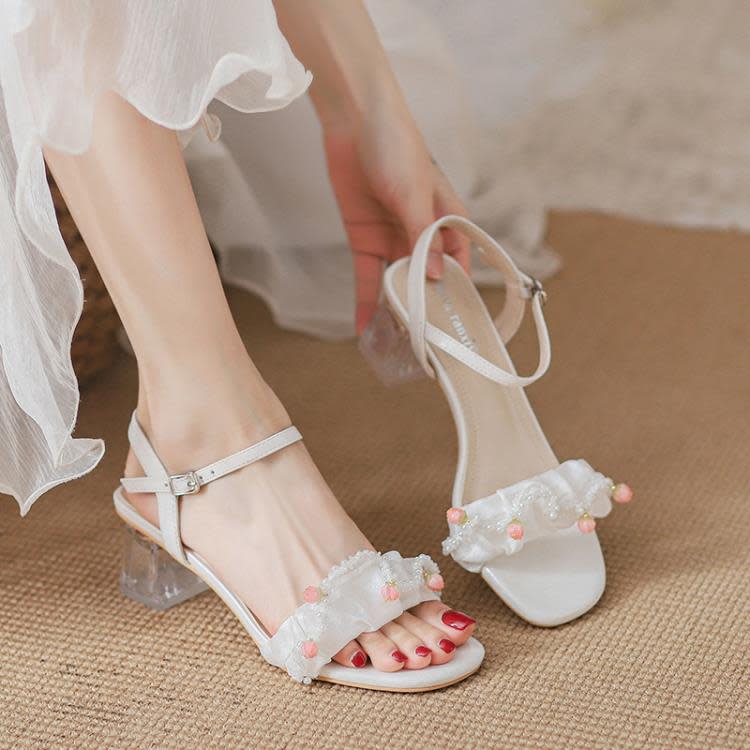 涼鞋 絕美透明粗跟女夏季2023年新款一字帶仙女風配裙子洋裝百搭時裝鞋