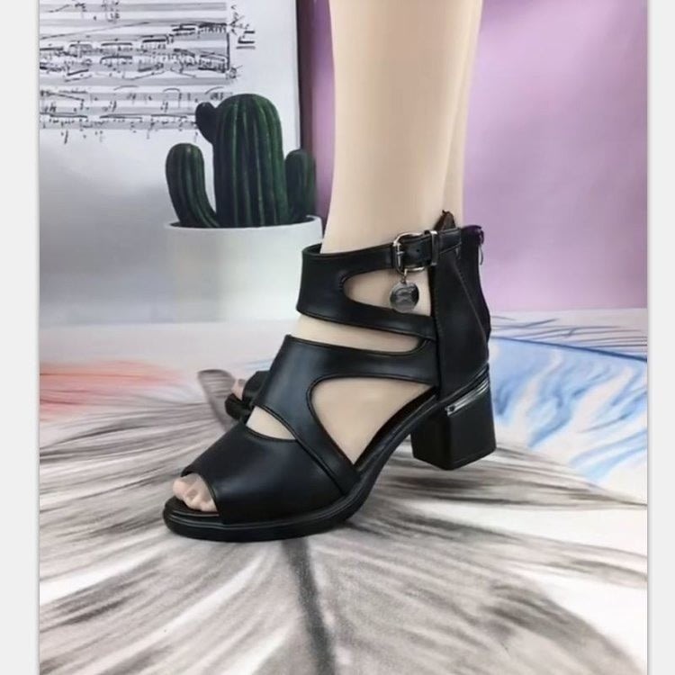 高跟鞋 復古羅馬涼鞋2023春秋款鏤空魚嘴粗跟防水臺鞋純色簡約涼鞋女