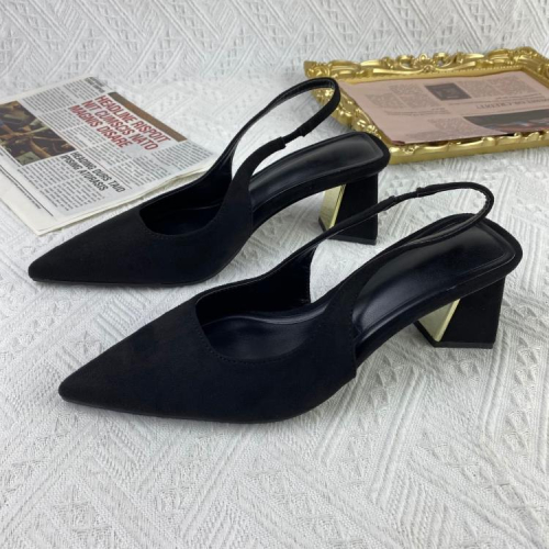 高跟鞋 ZA2023年夏季新品女鞋黑色露跟粗跟復古香港氣質穆勒鞋尖頭鞋