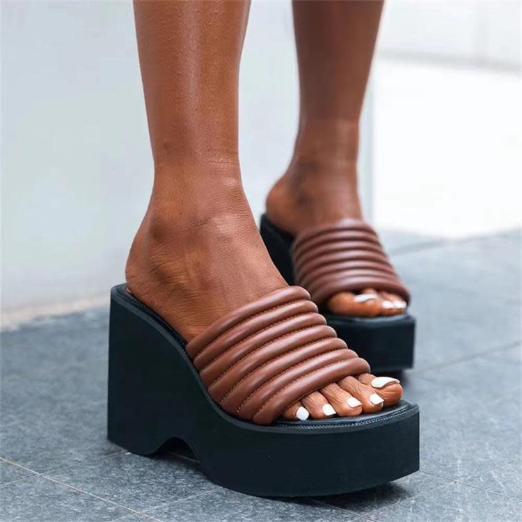 高跟鞋 2023歐美大碼新款女鞋厚底一字拖坡跟涼拖鞋35-43碼