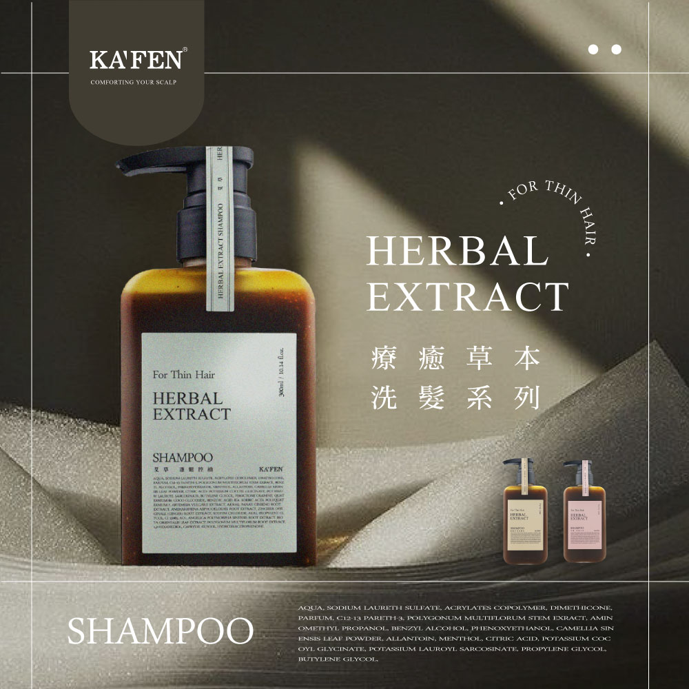 細軟髮呵護 【KAFEN卡氛】療癒草本洗髮系列 300ml 艾草 龍膽草 芍藥