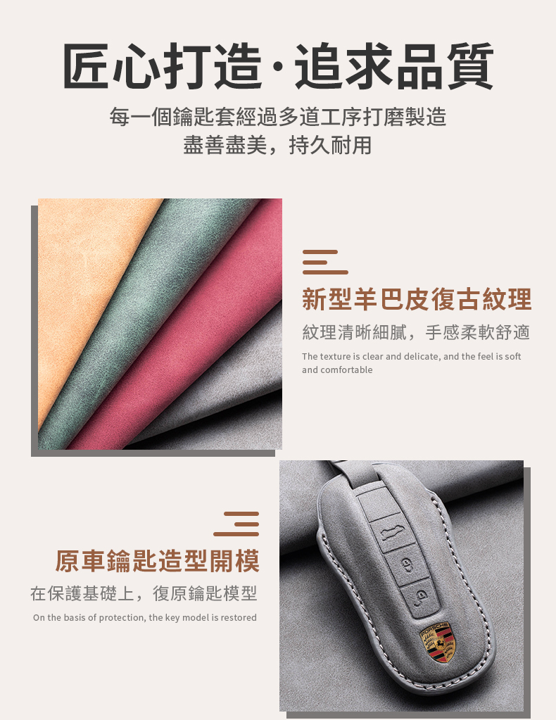 保時捷 PORSCHE 專用鑰匙套 凱燕 macan 911帕拉梅拉718 taycan 翻毛皮 鑰匙皮套 明亮 簡約 個人風格復古風皮套 升级3D全包羊巴皮打造 全面包裹,全面防摔防護新升级 新型皮革打造 外觀時尚有型•手感舒適柔軟