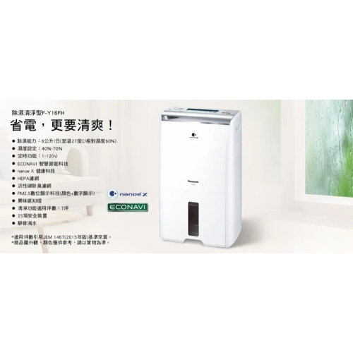 Panasonic國際牌 8公升空氣清淨除濕機 F-Y16FH