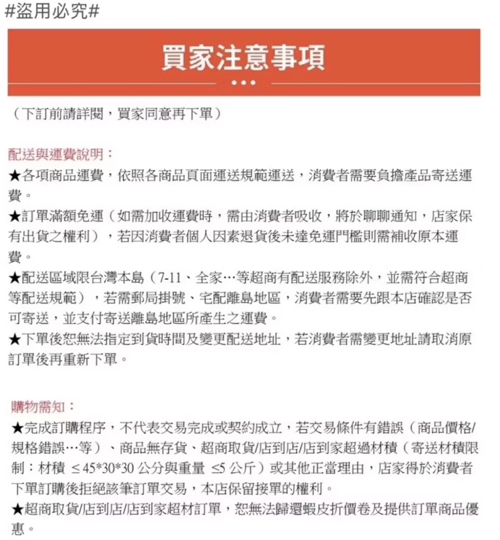 ● 宅配、郵掛【請務必於聊聊中,備註聯絡電話】,以利順利出貨。