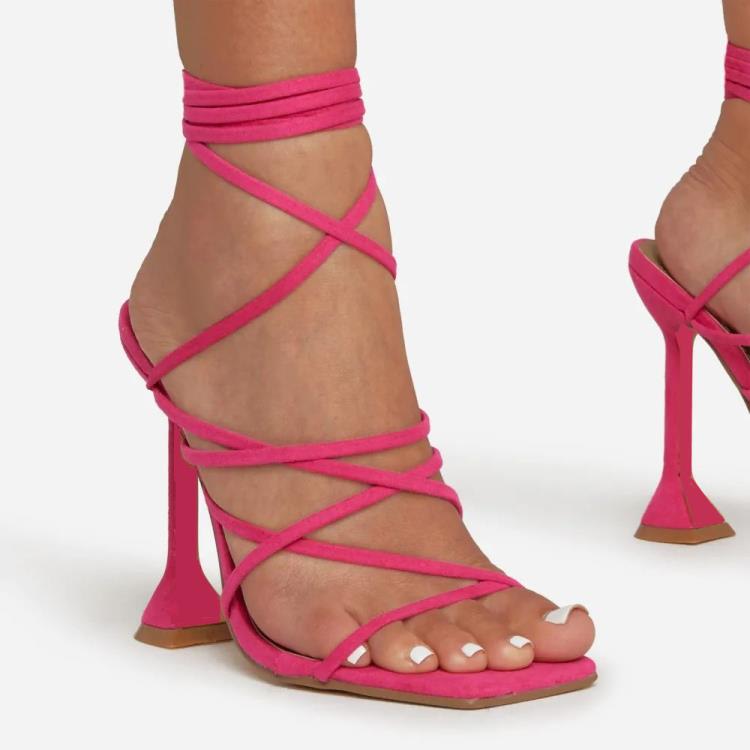 高跟鞋 歐美新款女鞋2023夏季羅馬風一字方頭腳環綁帶涼鞋女