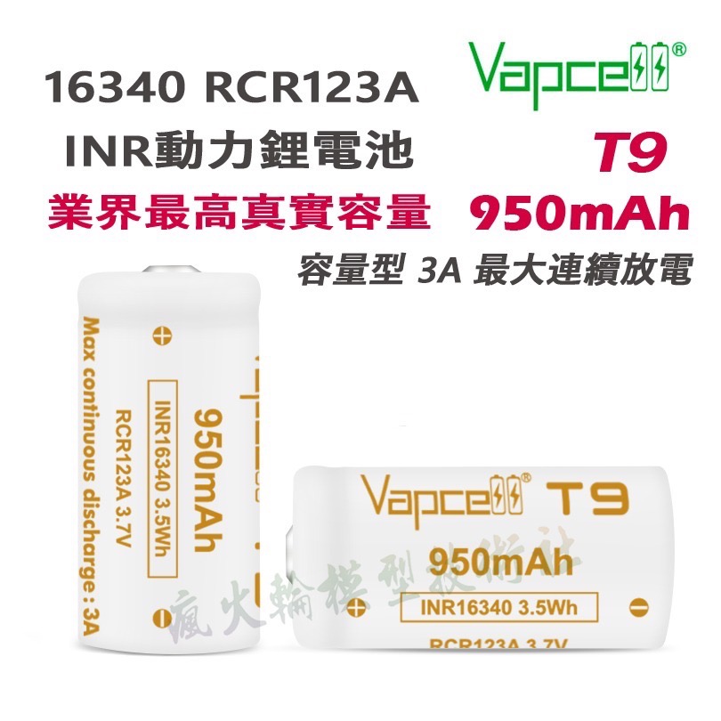Vapcell 16340 / RCR123A 3.7V T9 容量型 鋰離子電池 (充滿4.2V)