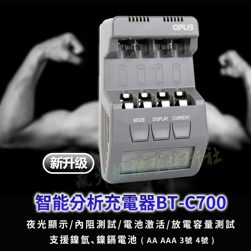 包裝內容:Opus BT-C700鎳鎘/鎳氫 電池充電器 *1,電源供應器*1,使用說明書*1