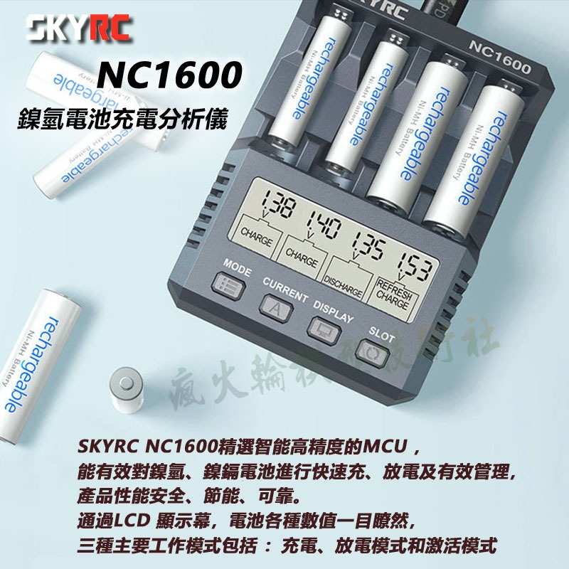 SkyRC NC1600 可以更好更快地對AA/AAA可循環鎳氫電池進行充電,同時還有電池活化和放電功能,延長電池使用壽命。 NC1600自帶LCD顯示,可查看充電數據;產品性能可靠、操作簡單,是居家、辦公的理想選擇。 NC1500有四個獨立插槽,支持AA / AAA鎳氫電池,最大充電電流為1500mA x4。