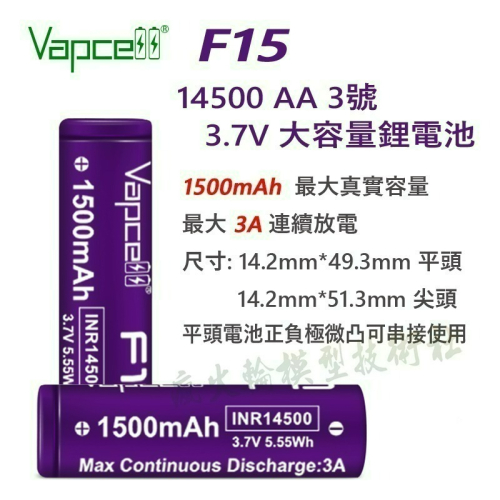 型號:L10 ICR14500 1500mAh 3A (紫皮)