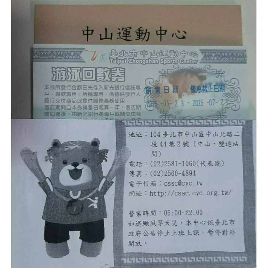 (現貨快速出貨)臺北市中山運動中心~游泳回數券