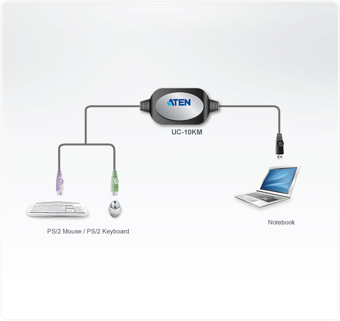 UC10KM為90公分線長的訊號轉換器,可將PS/2訊號裝置(鍵盤與滑鼠)轉換成USB訊號。並支援多種作業系統,滿足使用者需求。