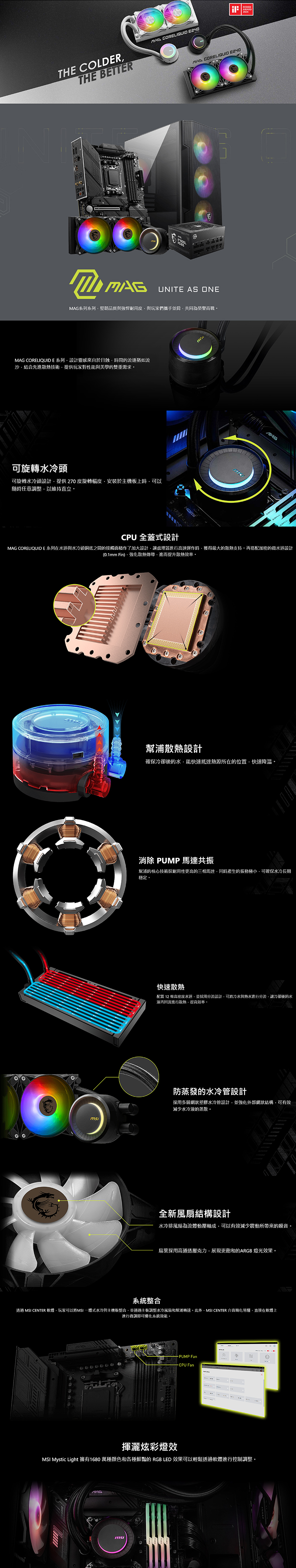 微星 MAG CORELIQUID E240 WHITE 水冷式CPU風扇