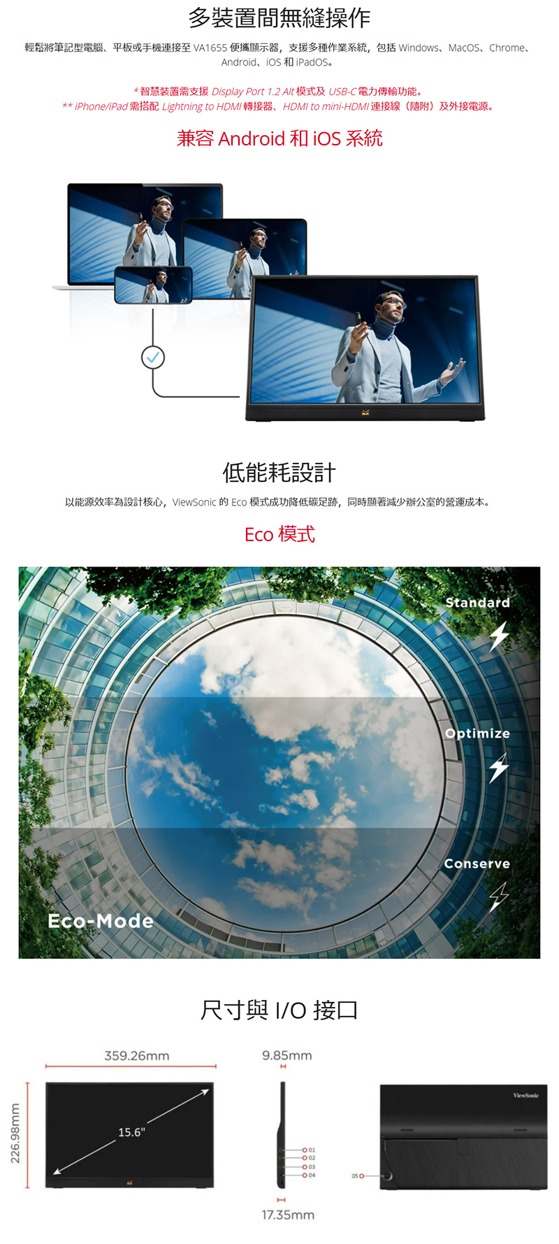 ViewSonic VA1655-3 16” USB-C 輕薄便攜顯示器