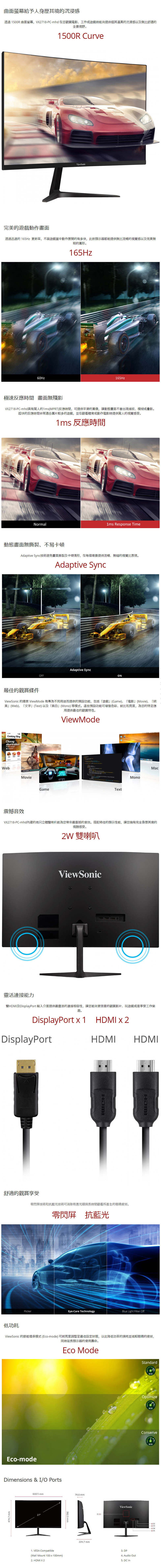 ViewSonic VX2718-PC-mhd 27” 180Hz 1500R 曲面電競顯示器