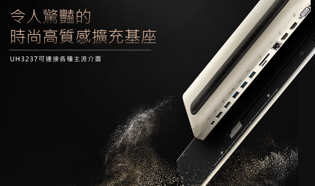 UH3237 可隨插即用(無需安裝驅動程式)並與所有主要操作系統(Windows 和OS X)兼容。筆記型電腦可直接置於此擴充基座上節省桌面空間,具時尚感的設計亦可直接置於顯示器旁,達到空間的最大使用效益。