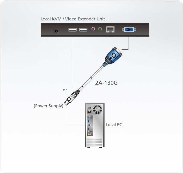 2A-130G適用於不需螢幕的近端ATEN KVM或視訊延長器,為與顯示相關的啟動問題提供了簡單、具經濟效益且方便的解決方案。