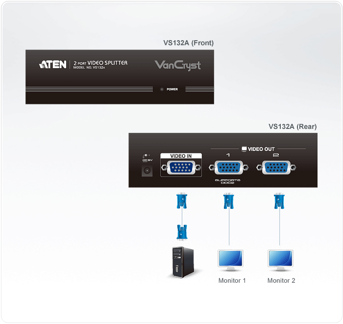 ATEN VS132A 2埠VGA視訊分配器 (頻寬450MHz)