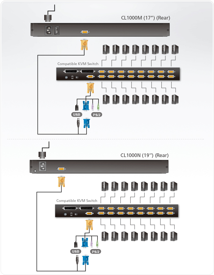 ★可搭配客製KVM線材或轉換器以支援PS/2或USB KVM多電腦切換器1
