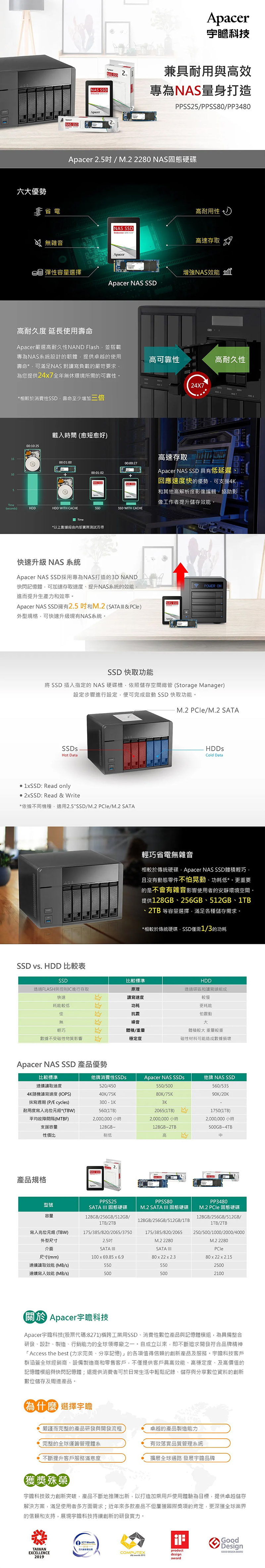 Apacer NAS SSD採用專為NAS打造的3D NAND快閃記憶體,可加速存取速度、提升NAS系統的效能,進而提升生產力和效率。