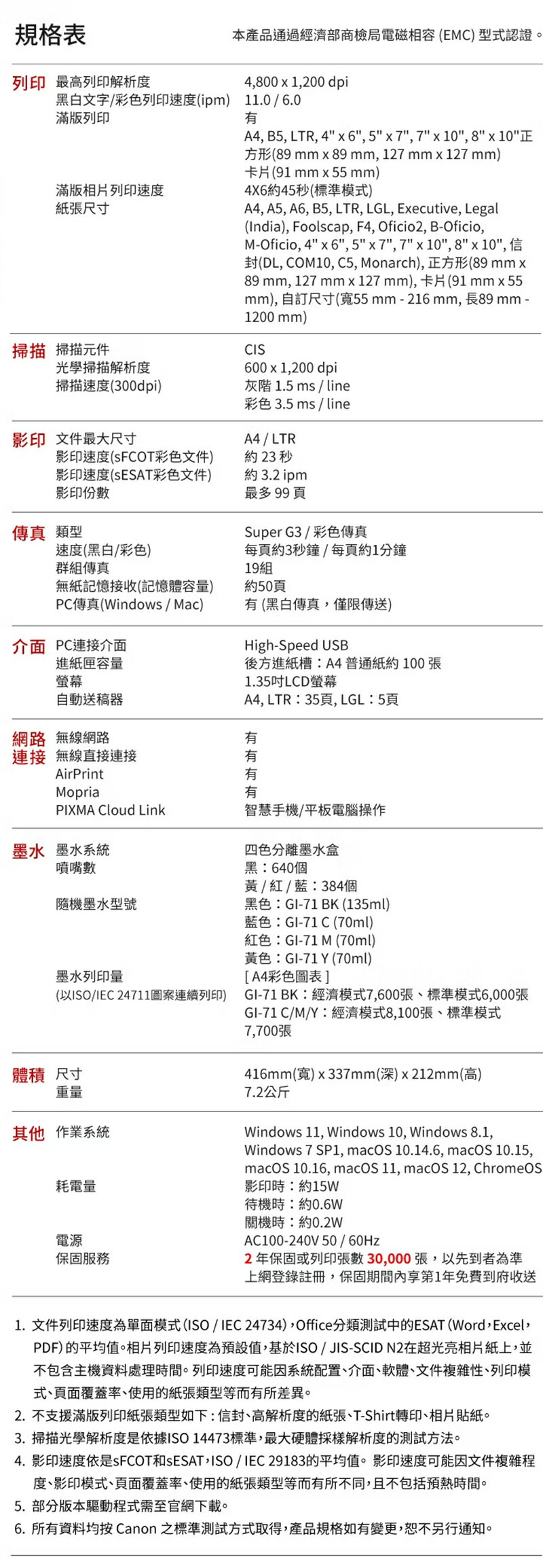 ★列印速度(A4, ISO): 最高 11 / 6 ipm (黑白/彩色)