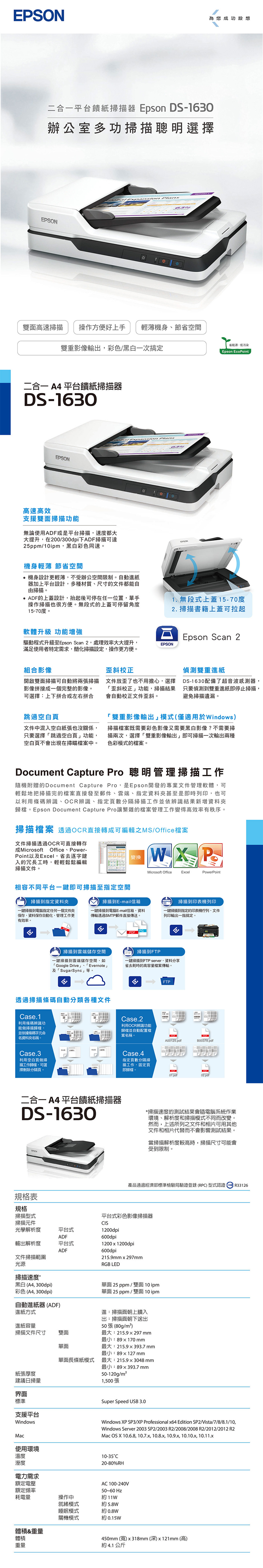 EPSON DS-1630 二合一A4平台饋紙掃描器