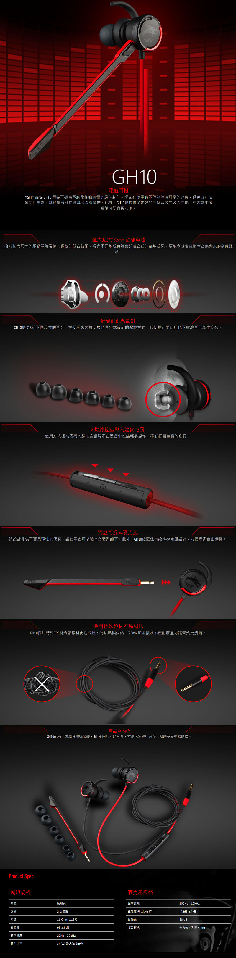 MSI微星 GH10 In-ear GAMING Headset 耳塞式電競耳機 S37-2100950-D22