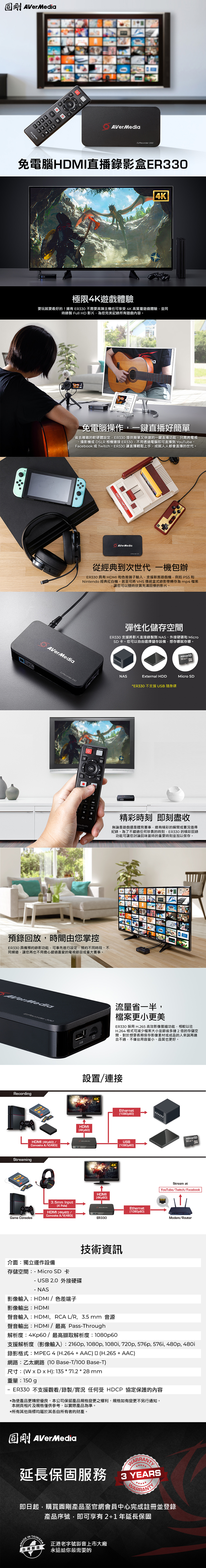 AVerMedia 圓剛 ER330 免電腦HDMI直播錄影盒