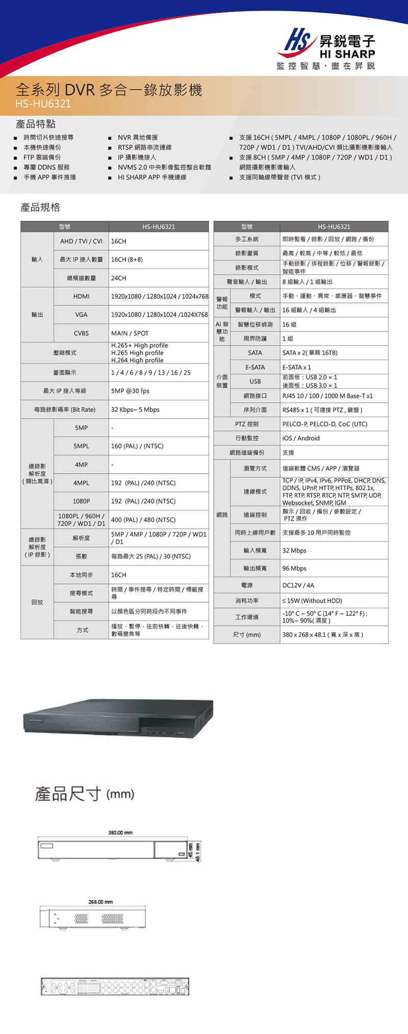 ★支援 16CH ( 5MPL / 4MPL / 1080P / 1080PL / 960H /720P / WD1 / D1 ) TVI/AHD/CVI 類比攝影機影像輸入