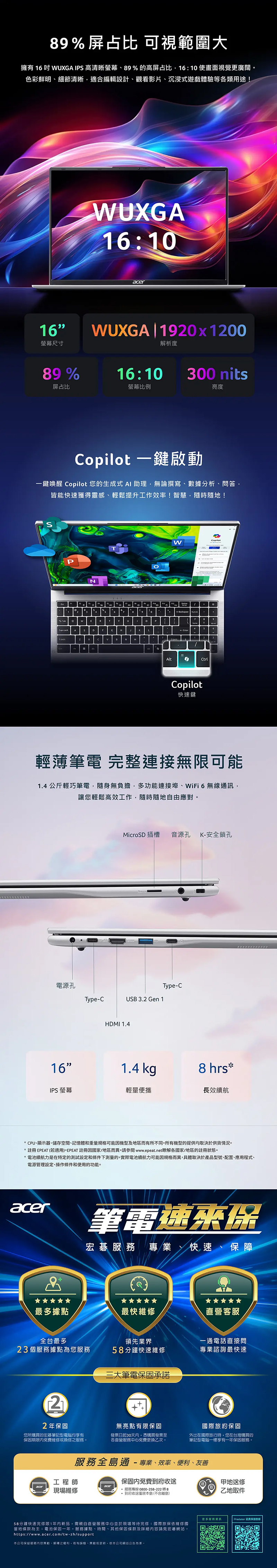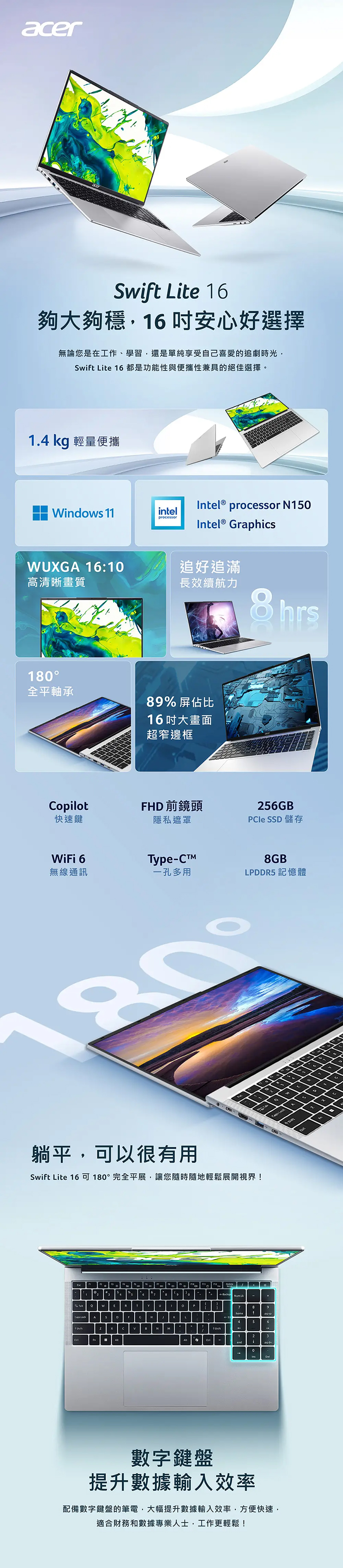 Acer 宏碁 Swift Lite SFL16-31P-C6VL 16吋輕薄文書筆電