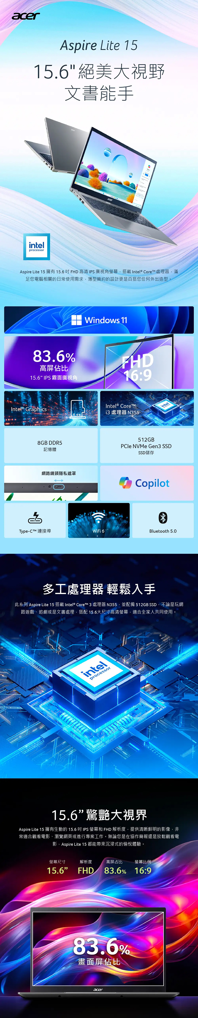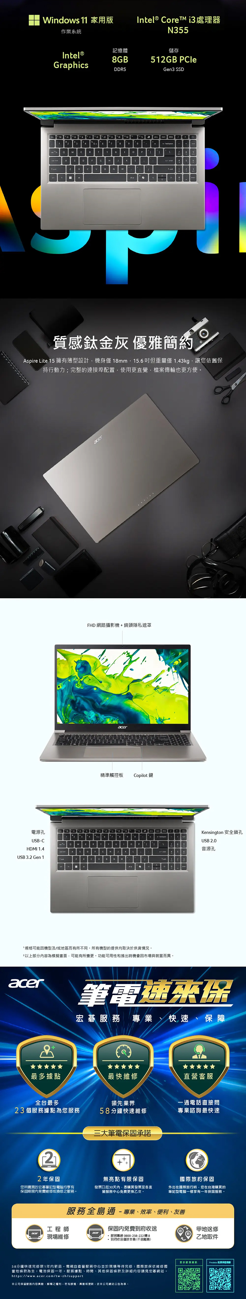 Acer 宏碁 Aspire Lite AL15-33P-31JK 15吋輕薄文書筆電