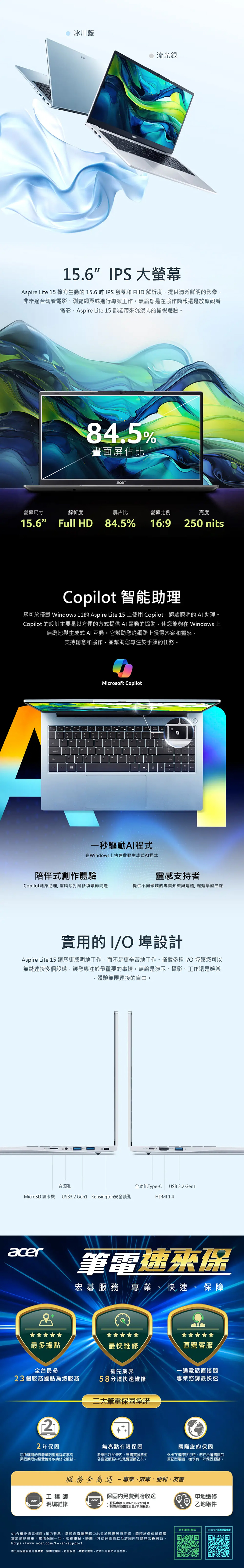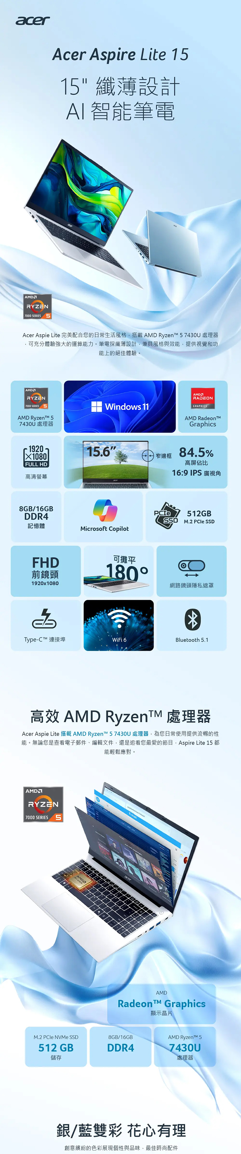 Acer 宏碁 Aspire Lite AL15-42P-R8QP 15吋輕薄文書筆電