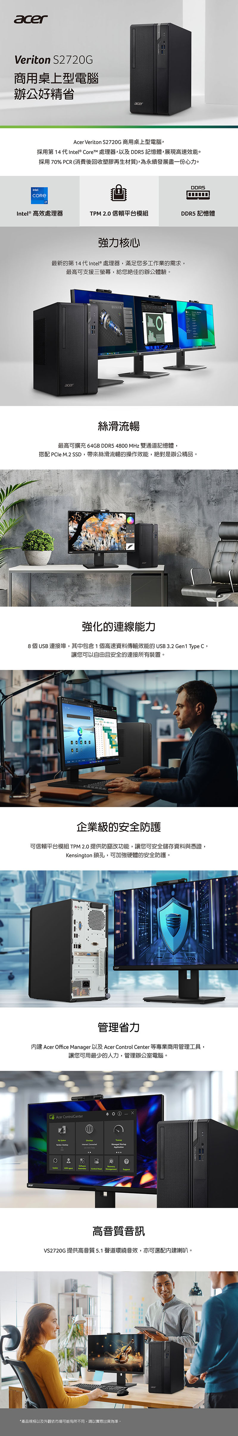 ACER 宏碁 Veriton S2720G-H( 降規版H610) 商用桌上型電腦