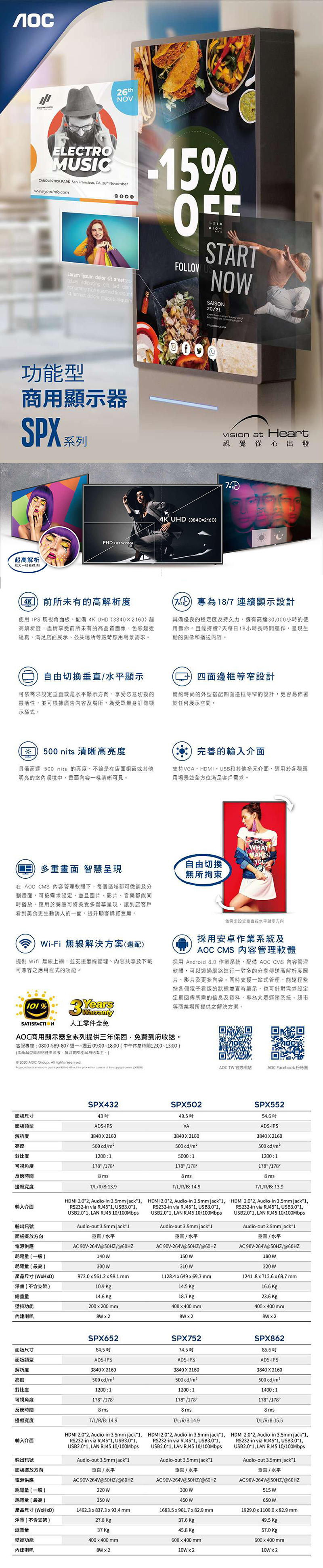AOC 55型 SPX552/02 55" 8核心數位電子看板 商用顯示器