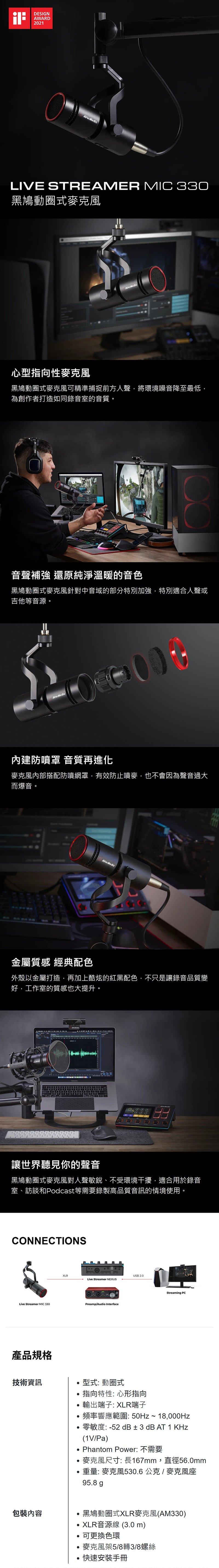 AVerMedia 圓剛 AM330 黑鳩動圈式麥克風