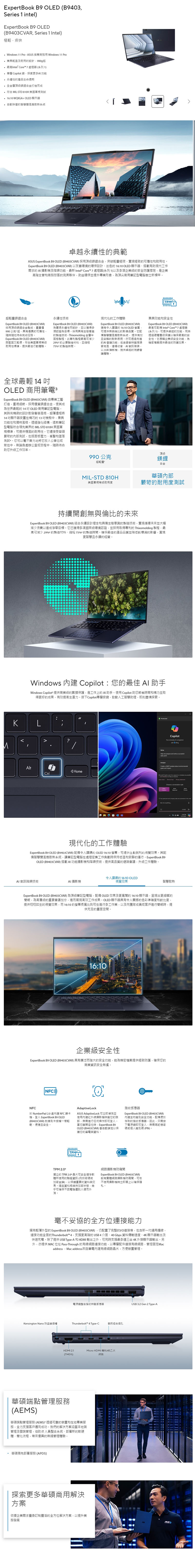 品名 B9403CVAR/14 WQXGA+/5-120U/16G/1T SSD/Wi-Fi 6E/Win11Pro/3Y