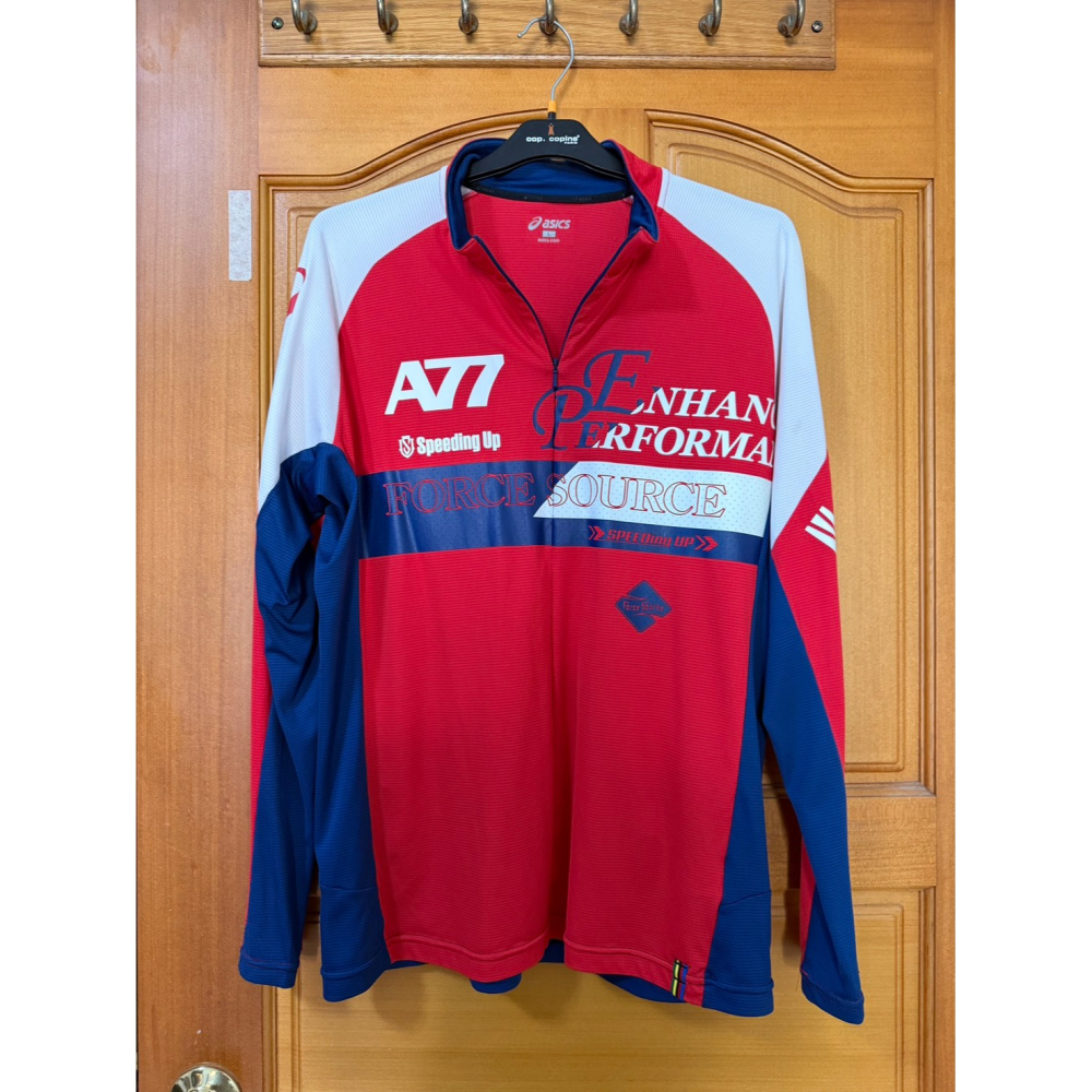 🔥 ASICS 長袖運動上衣 半拉鍊款 紅色超亮眼 🔥