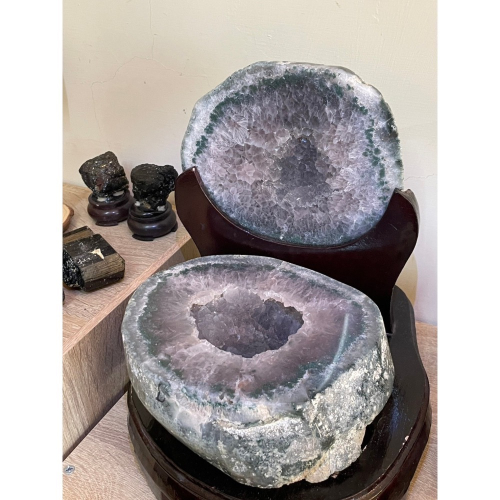 瑪瑙通常切開兩半,當作聚寶盆擺放,打開時就是要納氣、蓄氣;當蓋起來時,就是在孵育、強化。