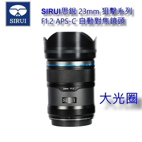 [加送保護鏡] SIRUI 思銳 23mm F1.2 狙擊系列 APS-C 自動對焦 鏡頭~碳纖黑 立福公司貨