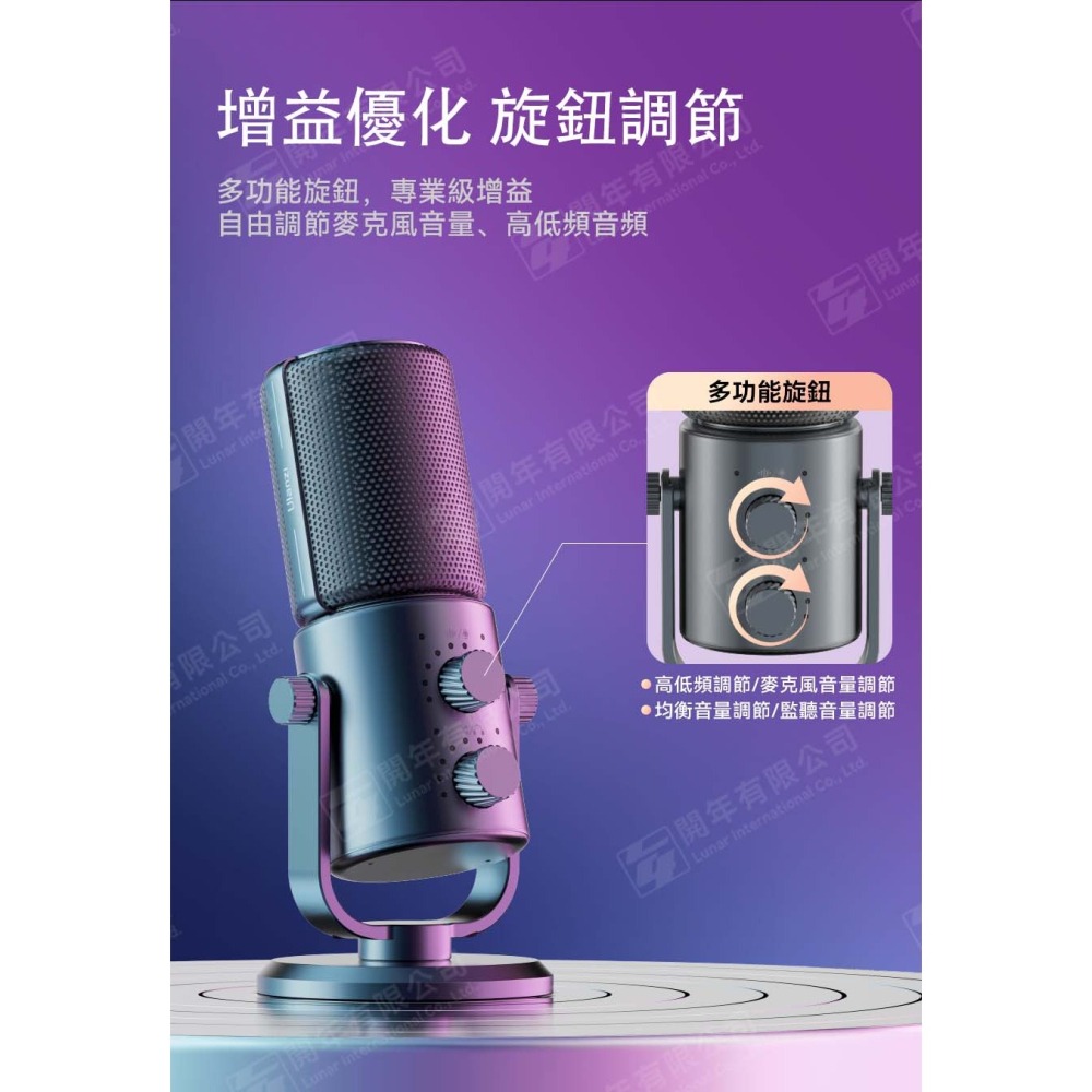 多功能旋鈕,專業級增益,自由調節麥克風音量、高低頻音頻