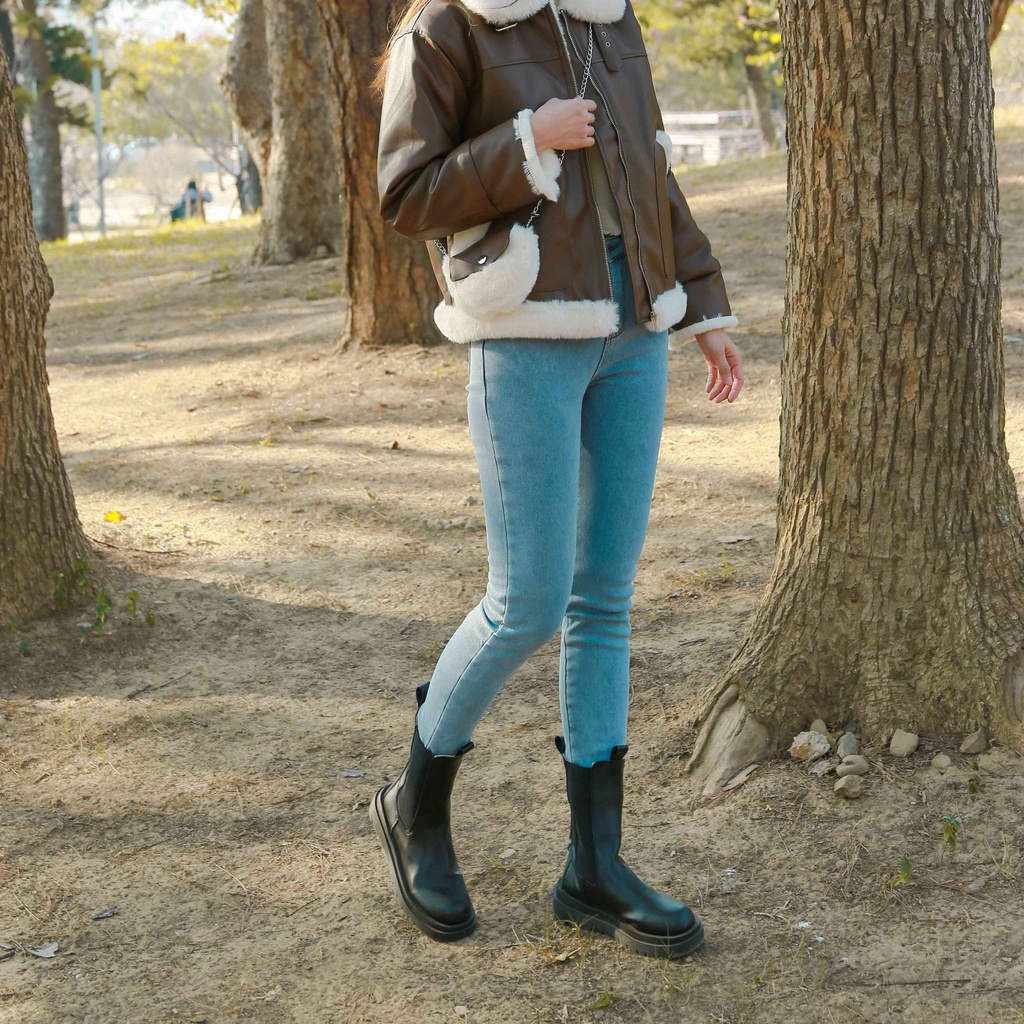材質:彈性牛仔布內裏加絨