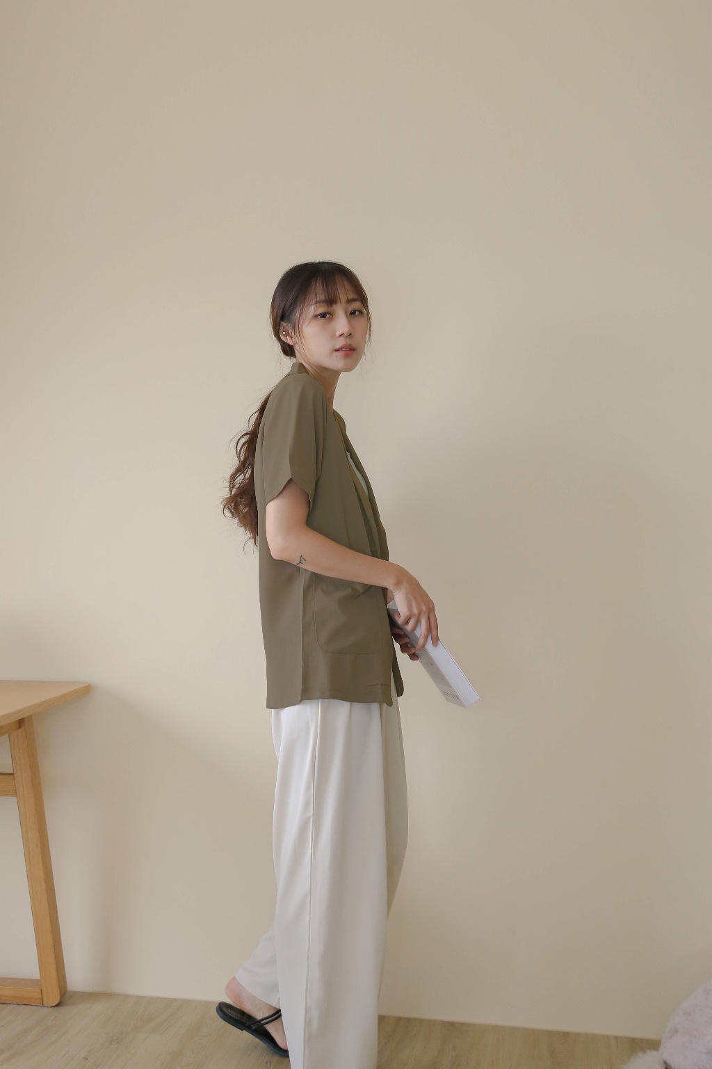 此款無墊肩,追求平肩的時尚感