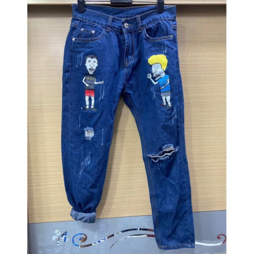 Beavis and Butthead 癟四與大頭蛋 刷破牛仔九分垮褲 男友牛仔褲 /褲子