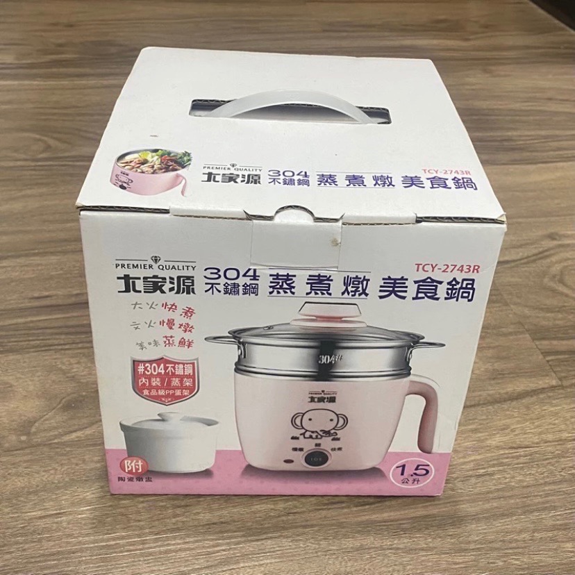 全新 大家源 304不鏽鋼蒸煮燉美食鍋 1.5L 附活動式蒸籠 TCY-2743R 小火鍋 蒸氣鍋 電湯鍋 消毒鍋 電火鍋(粉色)買就送全新餐具組(最後一張)