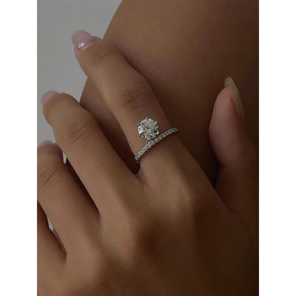 小眾925純銀鍍18K金一克拉復古單鑽戒指