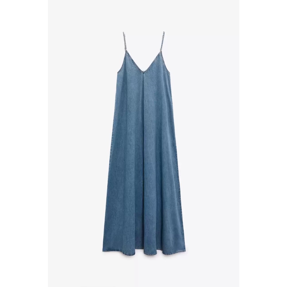 ZA大V領吊帶牛仔連身裙