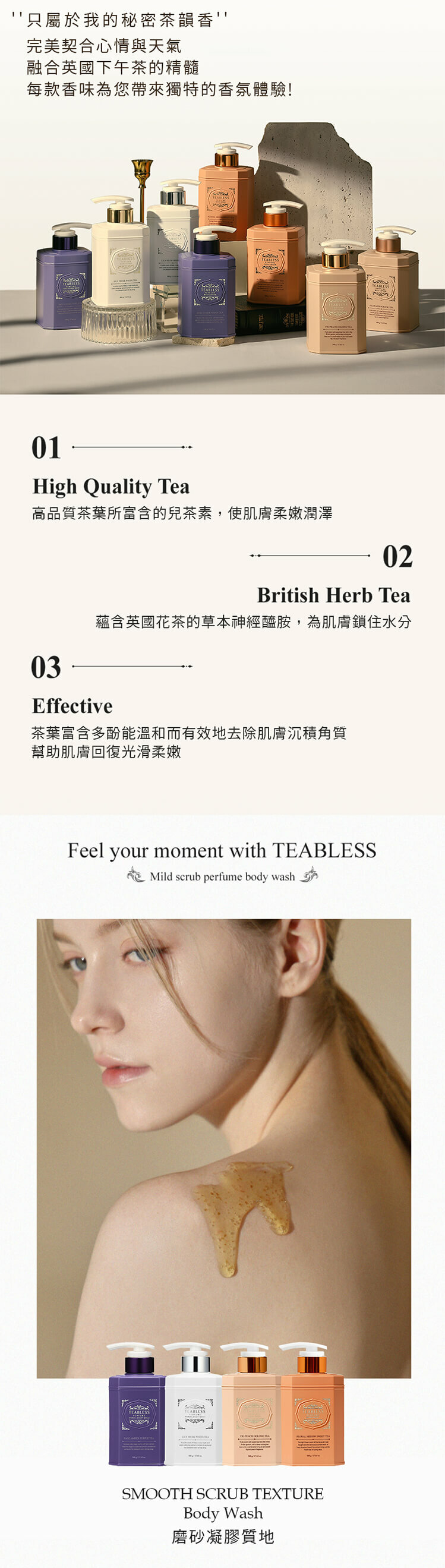 【Teabless】英式古典香水沐浴露(保濕鎖水亮白修護鎮靜平衡)