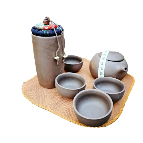 紫砂旅行茶具一壺4杯+茶葉罐+茶巾+旅行包