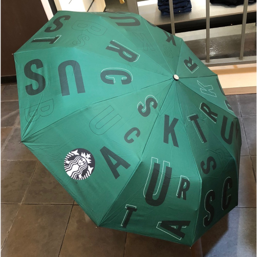 STARBUCKS 自動摺疊晴雨傘 綠