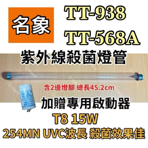 現貨 名象烘碗機 TT-938 TT-568A 專用T8 15W殺菌燈管 紫外線殺菌燈管 7P啟動器FS-1P